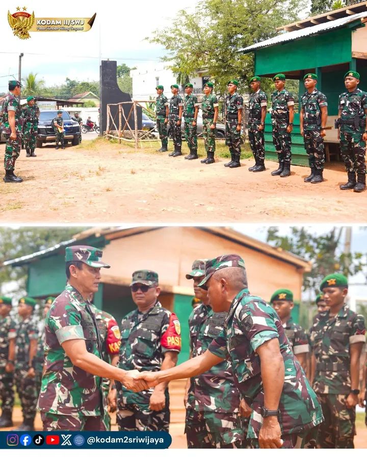 MJ. Sumatra Selatan – Pangdam II/Sriwijaya, Mayor Jenderal TNI Ujang Darwis, M.D.A., melaksanakan kunjungan kerja ke Marshaling Area Yonif TP 950/Ksatria Betuah yang berlokasi di Kelurahan Rimba Asam, Kecamatan Betung, Kabupaten Banyuasin, Sumatera Selatan, Senin (30/03/2026).