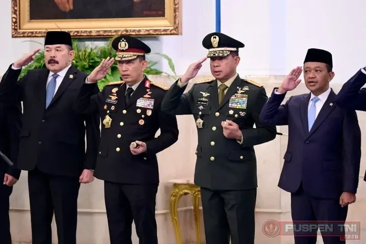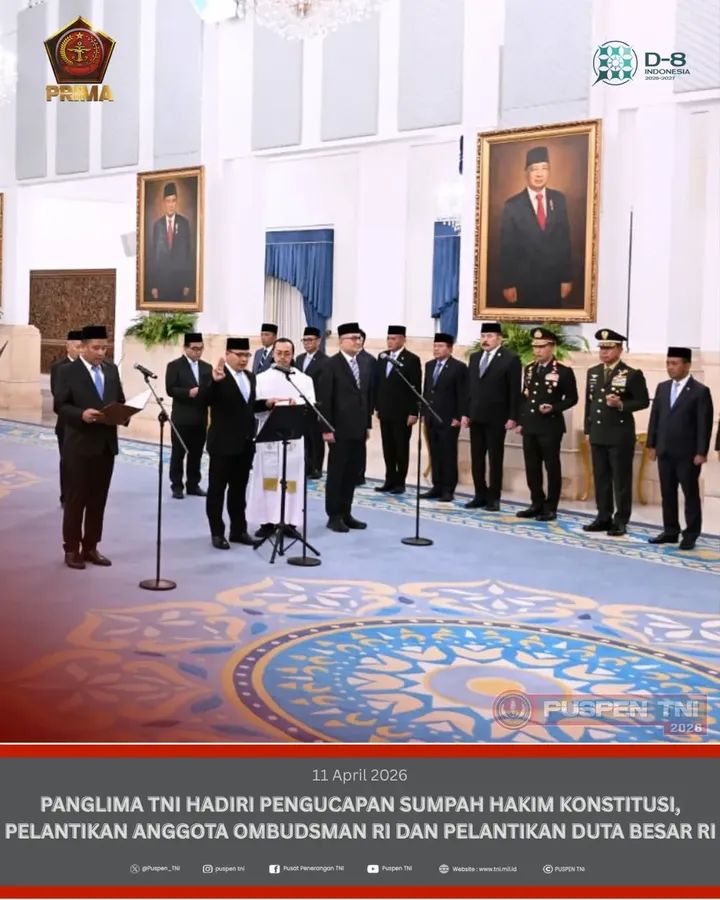 MJ. Jakarta – Puspen TNI. Panglima TNI Jenderal TNI Agus Subiyanto menghadiri acara pengucapan sumpah Hakim Konstitusi, pelantikan keanggotaan Ombudsman Republik Indonesia (RI) masa jabatan 2026–2031 serta Duta Besar Luar Biasa dan Berkuasa Penuh Republik Indonesia (LBBP RI) untuk Kesultanan Oman merangkap Republik Yaman,