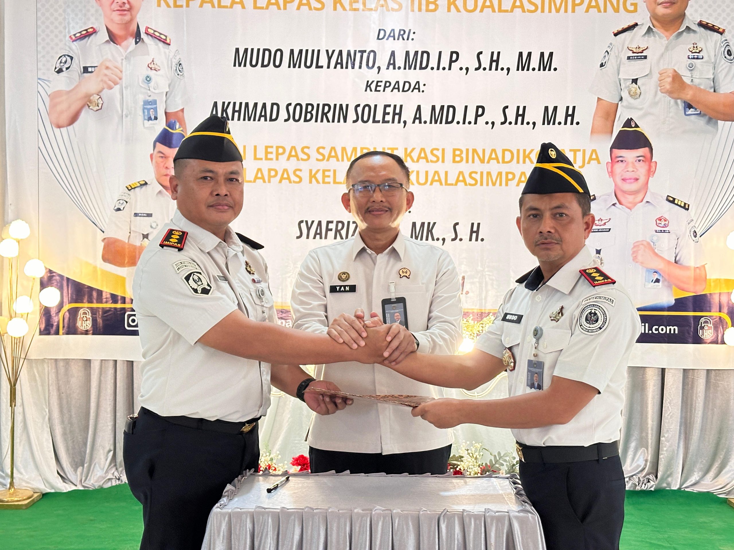 Jabatan Kalapas Kuala Simpang kini resmi diemban oleh Akhmad Sobirin Soleh, menggantikan pejabat lama, Mudo Mulyanto.